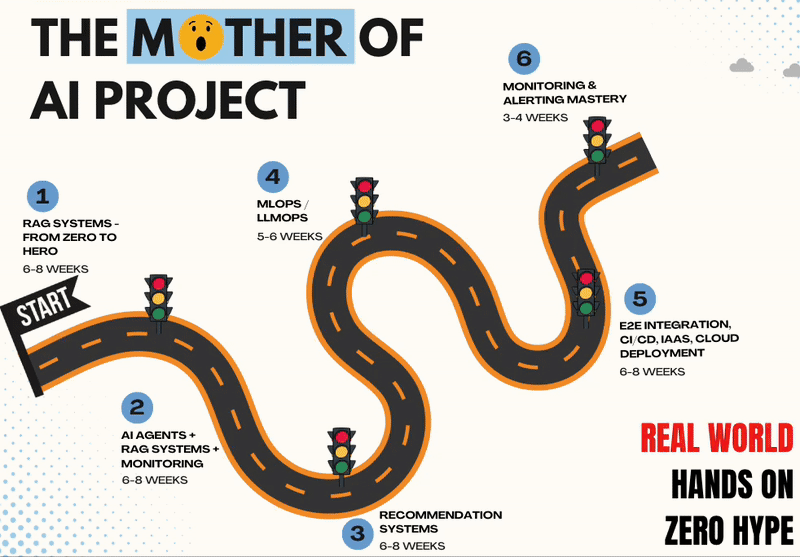 ↳ A hands-on AI course series for real-world builders.↳ 6 practical phases - from RAGs and Agents to Recommenders, MLOps & full-stack deployment.↳ No jargon. No fluff. Just AI that works.